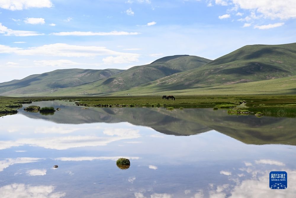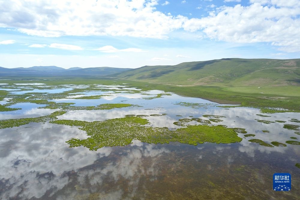 青海隆宝国家级自然保护区夏日景象(7月16日摄,无人机照片)。