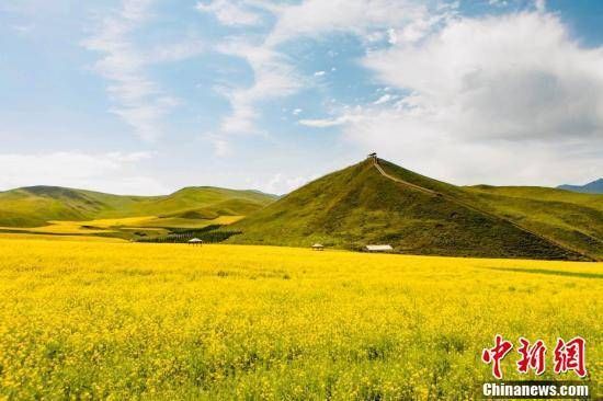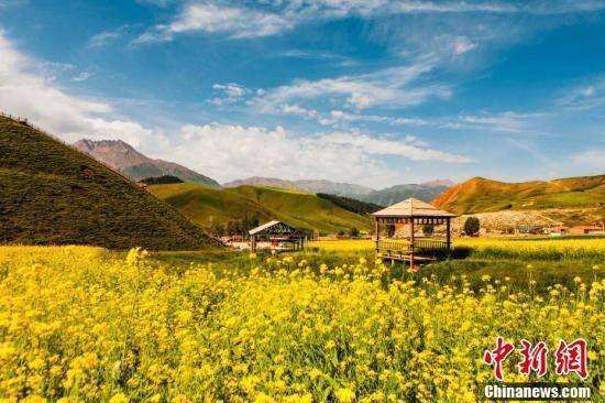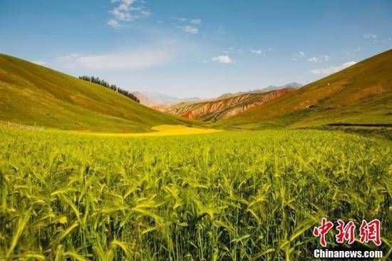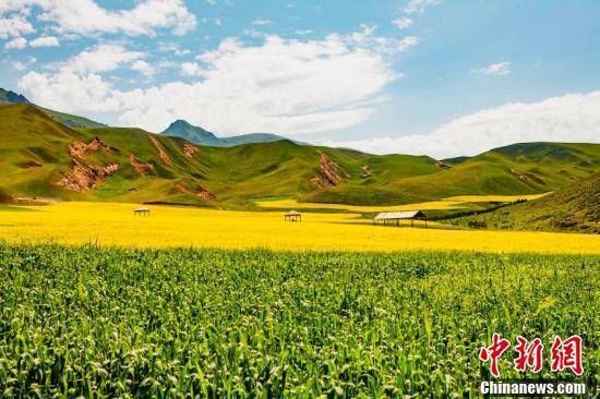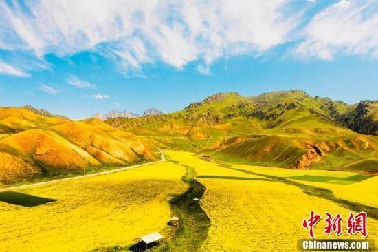 盛夏时节,走进青海海北藏族自治州祁连县,亲临卓尔山让人感觉到这里环境幽静,空气清新,风景秀丽,数十条褶皱山脉纵横捭阖,红色的砂岩砾石放射出丹霞地貌特有的光采。平缓的坡地上,油菜花、青稞,牧草、鮮花、原始森林相互间杂,田野、村庄与大自然融为一体,在大地上描绘出一幅气势恢弘色彩斑斓的画卷。